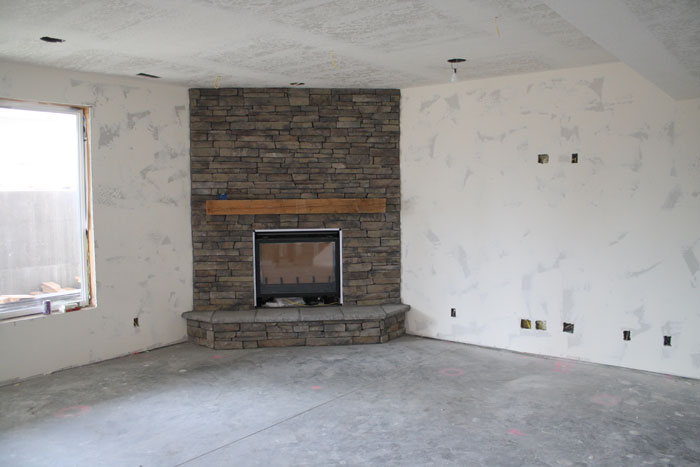 This creates a floating look to the rustic mantle beam.