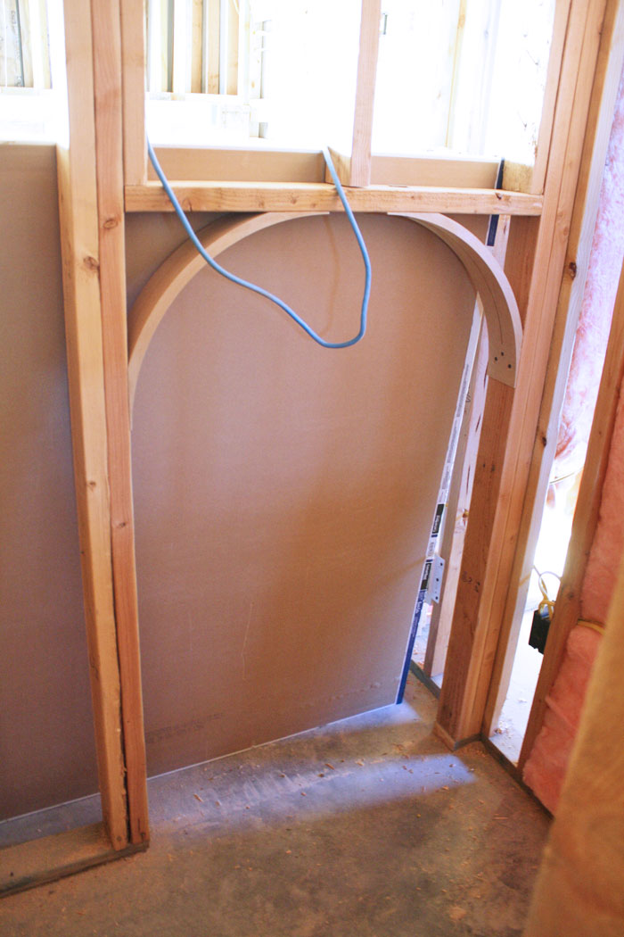 It was framed for a full sized door, so Rhett and I framed the opening lower and used an arch kit from Home Depot for $20.