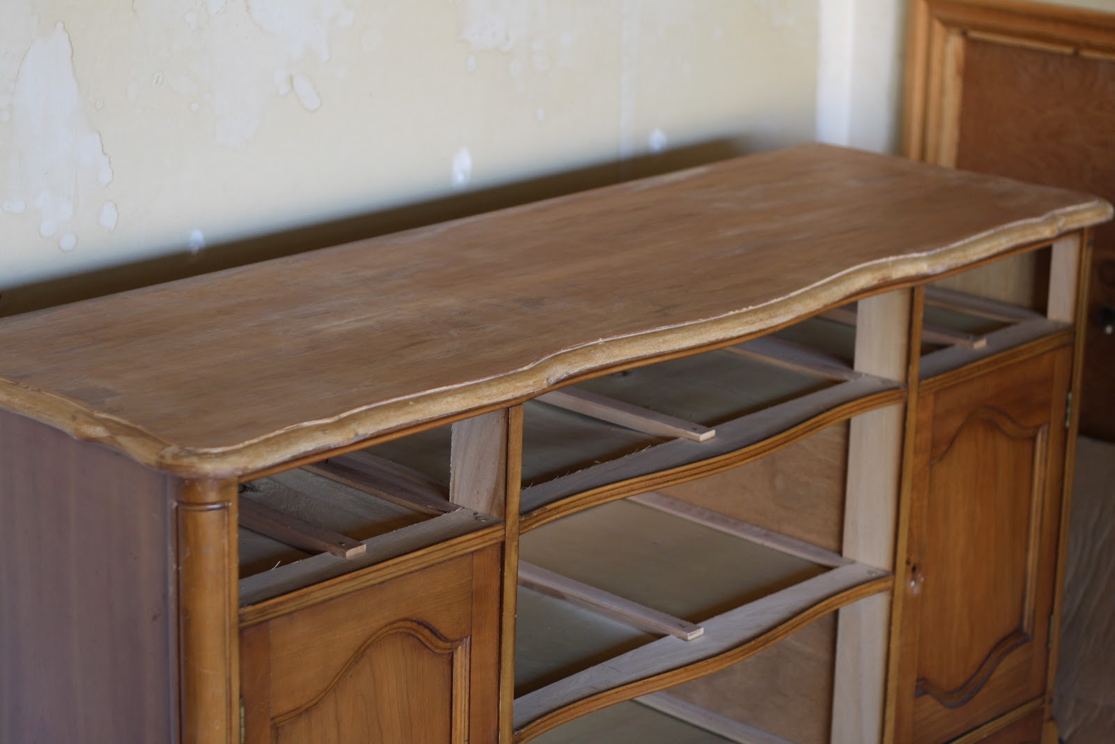 I started sanding the drawer fronts and body of the sideboard, but didn't do much because I hate sanding and I'm lazy, and was painting everything and decided it wasn't necessary.